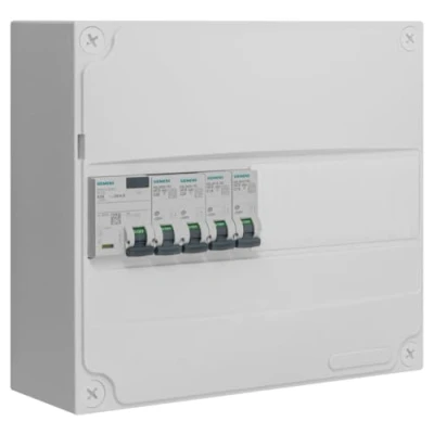 1-row image pre-equipped For mounting in GTL (housing material) or surface-mounted. Package Content:1 x 30mA 63A Type A Differential Switch 1 circuit breaker 10 A + 1 circuit breaker 16 A + 1 circuit breaker 20 A + 1 circuit breaker 32 A 1 horizontal comb with differential connection 40 A and 63 A Dimensions: height: 225 mm, width: 250 mm, depth: 97 mm, Weight: 3.0423792156 Pounds, Manufacturer: SIEMENS Ingenuity for life