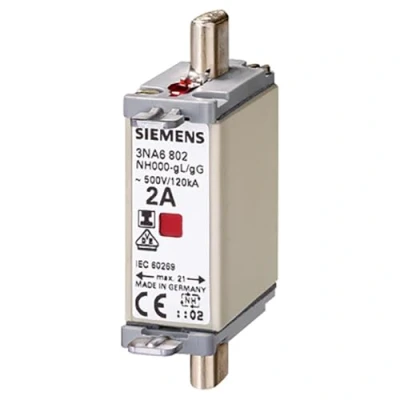 Siemens 3NA6820 LV HRC Fuse Link, NH000, in: 50 A, gG, Un AC: 500 V, DC: 250 Combination Indicator, Insulated Grip lugs, White