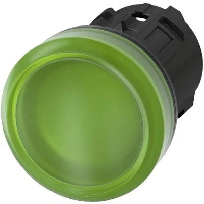 Siemens 3SU1051 6AA40 0AA0 Indicator Light, 22MM, Round, Metal, Shiny, Green, Smooth Lens, White