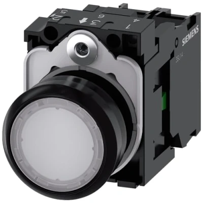Siemens 3SU1102 0AB60 1BA0 Illuminated PUSHBUTTON, 22MM, Round, Plastic, White, Flat Button, MOMENTARY Contact Type, with Holder, 1NO, LED Module, Integrated 24V AC/DC, Screw Terminal, White