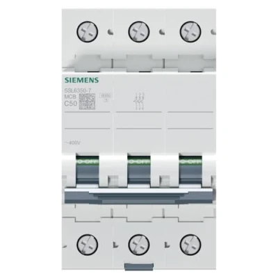 Siemens 5SL6363 7 Circuit Breaker 400V 6KA, 3POLE, C, 63A, White