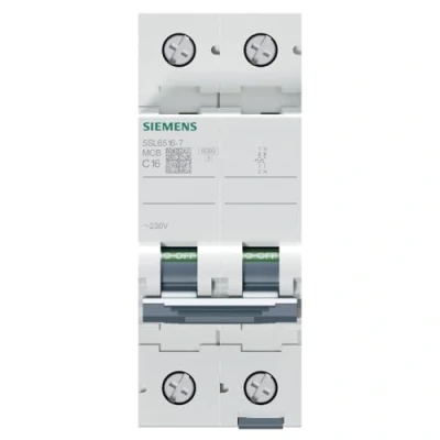 Siemens 5SL6216 7 Circuit Breaker 400V 6KA, 2POLE, C, 16A, White