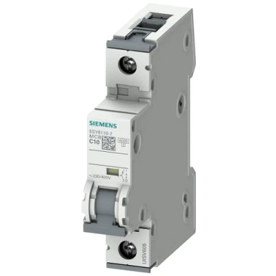 Siemens 5sy6110-7 single pole mcb, rated at 10a, type c for 230/400v ac Siemens 5sy miniature circuit breakers Siemens electrical installation