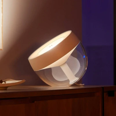 The Iris lamp seamlessly connects to your network via the Philips Hue Bridge (sold separately) or can be controlled directly via Bluetooth using the Philips Hue Bluetooth app. This versatility allows you to manage the lamp immediately, making it a convenient addition to any living space. Enjoy intelligent lighting control with options for dimming, colour selection, and pre-programmed routines from the app. You can also schedule your lamp to gradually increase or decrease in brightness, making waking up in the morning or winding down in the evening a more pleasant experience.