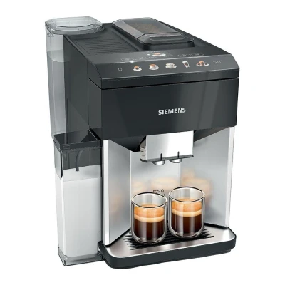 SIEMENS EQ500 Fully Automatic Coffee Machine with coffeeSelect Display, oneTouch DoubleCup, aromaDouble Shot, autoMilk Clean and ceramDrive in Daylight Silver/Piano Black