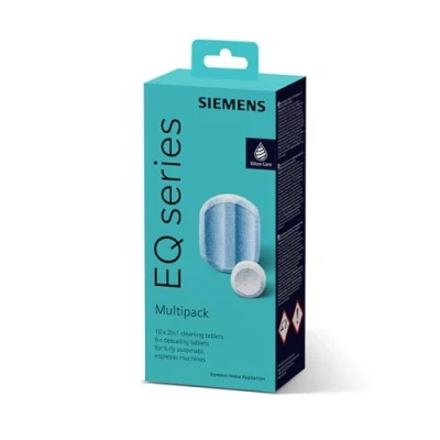 Easy cleaning: thanks to the powerful Siemens descaling & cleaning tablets Best coffee taste and perfect aroma thanks to optimal removal of all residues. Longer device life and perfect aroma thanks to optimal protection against limescale deposits. Specially developed for Siemens EQ fully automatic coffee machines, as well as built-in coffee machines. Box contents: 10 x cleaning tablets and 6 x descaling tablets., Weight: 0.6503636729 pounds, Manufacturer: Siemens
