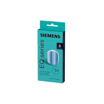 Coffee FriendThe original Siemens descaling tablets have been developed specially for all bean-to-cup coffee machines in the SIEMENS EQ series. The 2-in-1 formula removes limescale to protect your appliance from harmful deposits, as well as helps ensure a longer service life and better performance. Each package contains 3 tablets for 3 descaling cycles.THOROUGH LIMESCALE REMOVAL FOR A LONGER SERVICE LIFEThese Siemens descaling tablets remove limescale deposits safely and efficiently, helping you enjoy delicious coffee for longer.DESIGNED FOR THE AUTOMATIC DESCALING PROGRAM OF YOUR SIEMENS MACHINEThe tablets are suited perfectly for the descaling program found in Siemens bean-to-cup coffee machines from the EQ range, and are guaranteed to help keep your machine in top condition.