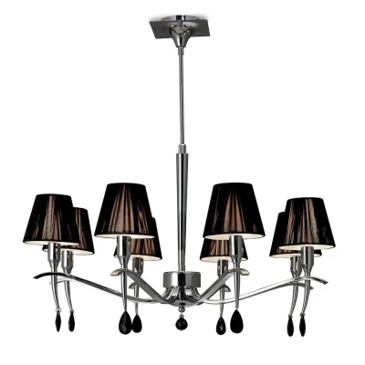 Siena Ceiling Pendant Round 8 Light E14, Polished Chrome with Black Shades And Crystal