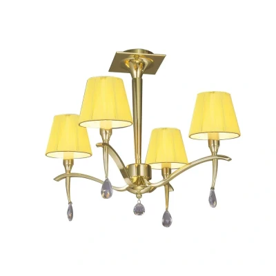 Siena Semi Flush Ceiling Round 4 Light E14, Polished Brass with Amber Cream Shades And Clear Crystal