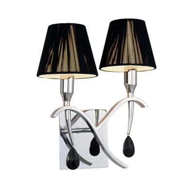 Siena Wall Lamp Switched 2 Light E14, Polished Chrome with Black Shades And Crystal