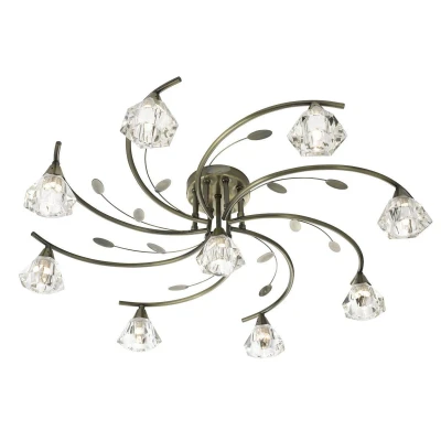 The Searchlight Sierra 9 Light Semi Flush Multi Arm Ceiling Light in Antique Brass and Glass offers a stunning design that beautifully embodies the essence of nature. This exquisite ceiling light combines functionality with aesthetic appeal, making it a perfect choice for various interiors.