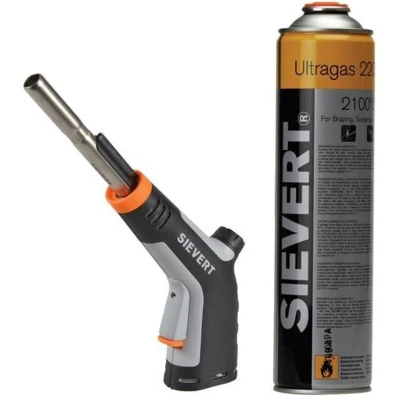 General description The Sievert 2535 Powerjet Kit is a powerful and efficient torch system designed for various applications including soldering, brazing, heating, precision work, shrinking, and paint stripping. It features an ergonomic handle for comfortable grip and is built for long-lasting reliability. The automatic piezo ignition and trigger on/off function help prevent LPG wastage, while the anti-flare feature allows the torch to operate in all positions. The kit includes a full range of interchangeable nozzles for added versatility and comes with 1 x Ultragas 220583, which has a gas mixture of propane, butane, propene, and acetone, providing a flame temperature of 2,100°C. Technical specifications Burner Included: 870601 Burner Diameter: 14mm Gas Consumption: 170g/h at 2 bar Effect: 2.2kW Connection: EU Fits EN417 7/16in Other information