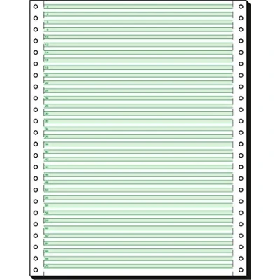 High-quality 12" x 240 mm (A4) computer paper (2000 sheets) Music ruled (1/6" green bar), 1-part, 60 gsm listing paper with longitudinal perforation Top quality due to state-of-the-art manufacturing techniques Paper type: ECF (elemental free from chlorine), carbonless Guarantees absolutely trouble-free processing with any dot matrix printer