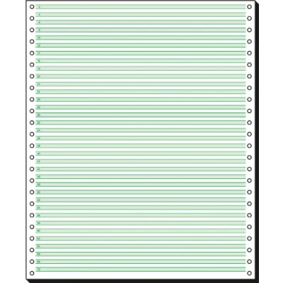 High-quality 12" x 250 mm (A4) computer paper (2000 sheets) Music ruled (1/6" green bar), 1-part, 60 gsm listing paper Top quality due to state-of-the-art manufacturing techniques Paper type: ECF (elemental free from chlorine), carbonless Guarantees absolutely trouble-free processing with any dot matrix printer Listing Paper 12"x250 mm (A4), 1part, 2000 sheets Paper weight: 60 gsm Paper type: ECF (elemental free from chlorine) Ruling: 1/6" green bar