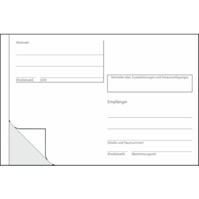Universal address labels - e.g. for postcards, letters, parcels or packages. In the format 140 x 97 mm (approx. A6 landscape). Sticks firmly and securely to any surface. With pre-printed transmitter and receiver field.