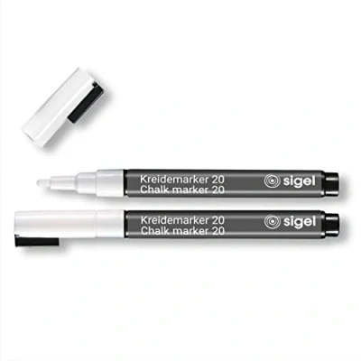 2 Board markers in White with a thin rounded tip and a line width of 1-2 mm for very fine, delicate lettering Perfect for Glass and all smooth, Glass-like surfaces: e.g | shop windows, mirrors, Glass Boards, etc. Fast-drying liquid chalk with excellent covering power The chalk can be wiped off cleanly using a damp or dry cloth Chalk marker pens also available in different colours