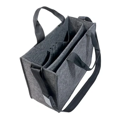 Handy and practical: This bag designed to store and carry a laptop and office supplies, perfect for keeping your essentials within reach, wherever you are Optimal size: Dimensions of 36 x 28 x 15 cm, suitable for laptops up to 15,4 inches and items up to 35 cm in length, fits perfectly in any standard locker or lockable cabinet, making secure storage easy Robust and stable: Dark grey synthetic felt bag, resistant to dirt, with grey stitching, the wide base ensures great stability, even with a load of up to 15 kg Practical interior: Includes 2 large compartments and 5 small storage pockets, top opening for quick access to items Functional and flexible: Additional elastic band to secure flat items such as a keyboard, file folders, and slim binders