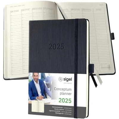 SIGEL C2519 Conceptum Weekly Planner 2025, Vertical Layout, Approx. A5, Black, hardcover, 2 Pages = 1 Week, 192