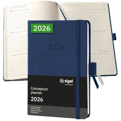 The Conceptum planner keeps you up-to-date during the working day,This is where classy design combines with practical features to provide you with a professional companion throughout the year Organise with confidence - with the elegant Conceptum Weekly planner for 2026 (calendar: 2 pages = 1 week, DE/GB/FR/NL) in approx A6 format (10,80 x 15,10 x 2 cm) with 176 pages (including 18 sheets perforated pages) The sturdy hardcover in dark blue guarantees a firm writing surface The elegant design of the international award-winning Conceptum range with a grooved Softwave surface - for a unique look and feel High-quality stitched binding allows the book to lie completely flat when open and ensures a long product lifespan Chamois-coloured paper (80 gsm, PEFC-certified), printed in classy grey; Monthly and annual overview, public holidays (D/AT/CH/UK/FR/BE/NL), overview of school holidays (DE/AT/CH/NL), units of measurement (EU/UK/US), a map of international time zones