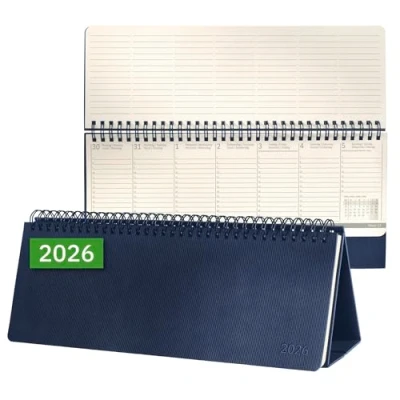 The Conceptum desktop planner comes in a classy design is an elegant companion throughout the year, It sits on your desk to provide a clear overview of all the appointments in one week or month Organise with confidence - with the desktop planner for 2026 (calendar: 2 pages = the week at the bottom and notes at the top, DE/GB/FR/NL), black, with 132 pages, The pages are divided into hourly appointment slots, with additional note pages to allow precise scheduling in this long landscape format (30 x 14,30 x 1,80 cm) weekly planner The elegant design of the international award-winning Conceptum range with a grooved Softwave surface - for a unique look and feel High-quality metal eyelet binding: easy to fold back the cover, with a practical free-standing feature Chamois-coloured paper (80 gsm, PEFC-certified), printed in classy grey; Monthly and annual overview, public holidays (D/AT/CH/UK/FR/BE/NL), overview of school holidays (DE/AT/CH/NL), units of measurement (EU/UK/US), a map of international time zones