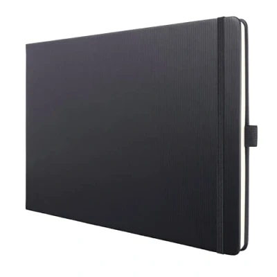 The Conceptum notebook is the elegant, modern companion for the office and for private use. The classy designer notebook is anything but ordinary, with an exclusive look and feel, along with a quality and practical features that are bound to impress. Also ideal as a sketchbook thanks to its panoramic landscape format and lack of distracting lines. Your notes are organised efficiently and always on hand with the stylish blank notebook in ca. A4 landscape format (29,50 x 21,30 x 1,70 cm) with 132 pages (including 66 sheets perforated pages). The sturdy hardcover in black guarantees a firm writing surface and the elastic fastener keeps everything securely in place. The elegant design of the international award-winning Conceptum range with a grooved Softwave surface - for a unique look and feel High-quality stitched binding allows the book to lie completely flat when open and ensures a long product lifespan; Chamois-coloured paper (100 gsm, FSC-certified), printed in classy grey Elastic fastener, pen loop, quick pocket, 2 ribbon markers
