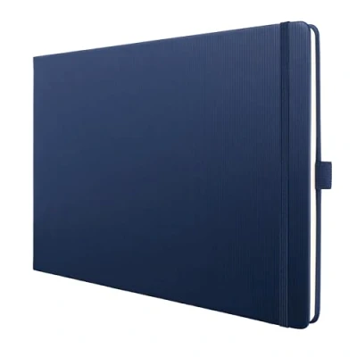 The Conceptum notebook is the elegant, modern companion for the office and for private use. The classy designer notebook is anything but ordinary, with an exclusive look and feel, along with a quality and practical features that are bound to impress. Also ideal as a sketchbook thanks to its panoramic landscape format and lack of distracting lines. Your notes are organised efficiently and always on hand with the stylish blank notebook in ca. A4 landscape format (29,50 x 21,30 x 1,70 cm) with 132 pages (including 66 sheets perforated pages). The sturdy hardcover in dark blue guarantees a firm writing surface and the elastic fastener keeps everything securely in place. The elegant design of the international award-winning Conceptum range with a grooved Softwave surface - for a unique look and feel High-quality stitched binding allows the book to lie completely flat when open and ensures a long product lifespan; Chamois-coloured paper (100 gsm, FSC-certified), printed in classy grey Elastic fastener, pen loop, quick pocket, 2 ribbon markers