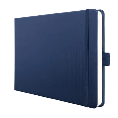 The Conceptum notebook is the elegant, modern companion for the office and for private use. The classy designer notebook is anything but ordinary, with an exclusive look and feel, along with a quality and practical features that are bound to impress. Also ideal as a sketchbook thanks to its panoramic landscape format and lack of distracting lines. Your notes are organised efficiently and always on hand with the stylish blank notebook in ca. A5 landscape format (21,30 x 14,80 x 1,70 cm) with 132 pages (including 66 sheets perforated pages). The sturdy hardcover in dark blue guarantees a firm writing surface and the elastic fastener keeps everything securely in place. The elegant design of the international award-winning Conceptum range with a grooved Softwave surface - for a unique look and feel High-quality stitched binding allows the book to lie completely flat when open and ensures a long product lifespan; Chamois-coloured paper (100 gsm, FSC-certified), printed in classy grey Elastic fastener, pen loop, quick pocket, 2 ribbon markers