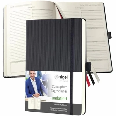 SIGEL CO705 Daily planner, undated, in German, A5, hardcover, Black Conceptum