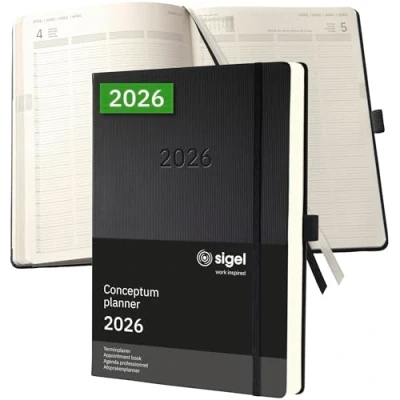 The Conceptum planner keeps you up-to-date during the working day,This is where classy design combines with practical features to provide you with a professional companion throughout the year Organise with confidence - with the elegant Conceptum Appointment book for 2026 (calendar: 1 page = 1 day, DE/GB/FR/NL) in A4+ format (22,50 x 31,50 x 3,50 cm) with 480 pages (including 18 sheets perforated pages) The sturdy hardcover in black guarantees a firm writing surface The elegant design of the international award-winning Conceptum range with a grooved Softwave surface - for a unique look and feel High-quality stitched binding allows the book to lie completely flat when open and ensures a long product lifespan Chamois-coloured paper (80 gsm, PEFC-certified), printed in classy grey; Monthly and annual overview, public holidays (D/AT/CH/UK/FR/BE/NL), overview of school holidays (DE/AT/CH/NL), units of measurement (EU/UK/US), a map of international time zones