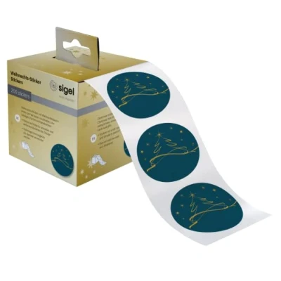 SIGEL CS124 Christmas stickers on a roll, 200 sticker, 4,7 x cm, "Christmas tree", petrol Blue, Yellow