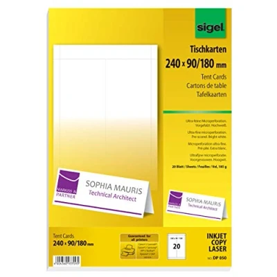 SIGEL DP050 Tent Cards, 24 x 9 cm, 20 sheets equal to Pieces