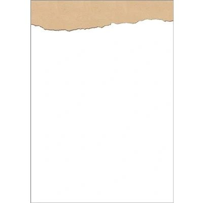 100 sheets of "Torn Kraft Paper" patterned paper, with a White background and torn Beige paper motif at the top of the page HIGH QUALITY: A4 (21 x 29.7 cm). Very high quality 200g/m² cardBoard paper made in Germany. Design printed on both sides DURABLE: FSC certified paper from responsible forest management VERSATILE: The paper is perfect for creating menus, invitations, letters - for restaurants, hotels, or events such as weddings, baptisms, communions, birthdays, golden anniversaries, and many other special occasions PRINTABLE: This paper is suitable for all types of inkjet or laser printers and copiers, and of course for handwriting