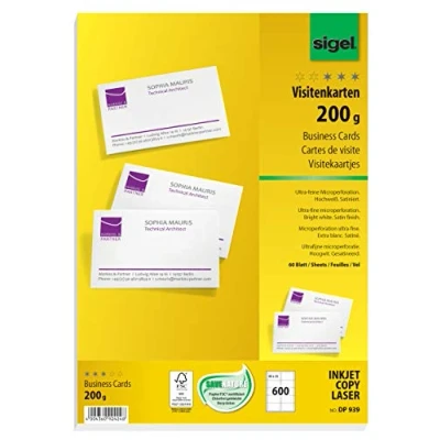 SIGEL DP939, 85x55 mm (A4), Business Cards, mp, 200 gsm, printable, bright White, 600 Piecesequal to60 sheets