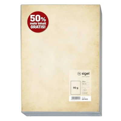 SIGEL DP983 Vintage Design Paper DIN A4 50 Sheets + 25 Free Writing Printed on Both Sides 90 g Made from Sustainable