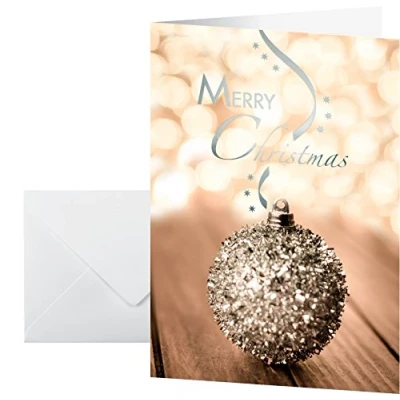 Pack of 10 hand-made christmas cards with 10 white envelopes - cards with silver embossing Fine high-quality cardboard cards, 220 gsm Closed format: A6 (10,5 x 14,8 cm): open format:A5 (14,8 x 21 cm) Ideal for sending personal greetings to colleagues, friends, family, etc. Suitable for all inkjet/laser printers and copiers