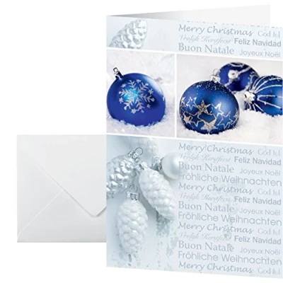 Pack of 25 christmas cards with 25 White envelopes - cards on glossy cardBoard Fine high-quality cardBoard cards, 220 gsm Closed format: A6 (10,5 x 14,8 cm); Open format:A5 (14,8 x 21 cm) Ideal for sending personal greetings to colleagues, friends, family, etc. Suitable for all inkjet/laser printers and copiers