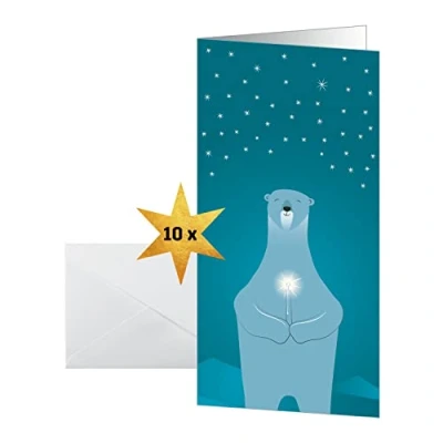 For a special Christmas message that you can customise and print yourself. With an exclusive motif and printed in a matter of seconds: Christmas Cards "Polar bear with candle" (Motif: Polar bear with candle in petrol Blue, White) in the DL format (White cardBoard, 250 gsm, 10 cards) | Incl | 10 matching gummed envelopes. Made in Germany | With a design that sets the mood: appealing and contemporary FSC-certified: high-quality, environmentally friendly paper from responsible sources | Suitable for all inkjet and laser printers and copiers, or to write on by hand Folding cards for your Christmas post, invitations or Christmas menus | Discover all the other designer products in the Polar Bear (Collection comprises writing paper, envelopes, cards, gift bags and gift wrap.) collection.