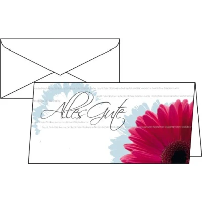Birthday/Greeting Cards/Gerbera Cards - Made of 220gsm glossy cardboard. Suitable for all inkjet and laser printers and copiers Open format: 2/3 A4 - Closed format: DIN long Cards are pre-prepared - for pure crease to DIN format. Includes 10 white envelopes (wet glued)