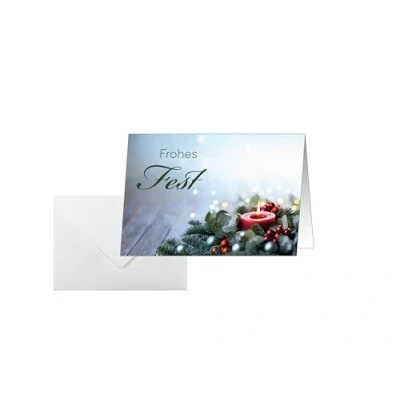 For a special Christmas message that you can customise and print yourself With an exclusive motif and printed in a matter of seconds: Christmas cards "Candlelight Cheer" (Motif: candle in green/red) in the A6 format (250 gsm, 25 cards, card: white cardboard | envelope: white paper) Made in Germany With a design that sets the mood: appealing and contemporary FSC-certified: high-quality, environmentally friendly paper from responsible sources; Suitable for all inkjet and laser printers and copiers, easy to personalise with SIGEL Word template (download from the manufacturer's website), or to write on by hand