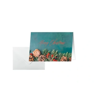 For a special Christmas message that you can customise and print yourself With an exclusive motif and printed in a matter of seconds: Christmas cards "Green Christmas" (Motif: fir branches in green/brown/red) in the A6 format (250 gsm, 25 cards, card: white cardboard | envelope: white paper) Made in Germany With a design that sets the mood: appealing and contemporary FSC-certified: high-quality, environmentally friendly paper from responsible sources; Suitable for all inkjet and laser printers and copiers, easy to personalise with SIGEL Word template (download from the manufacturer's website), or to write on by hand