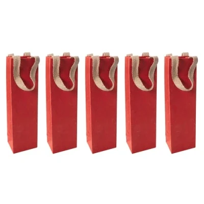 SIGEL ET012 Gift bag bottle red with base inlay and wide Jute handles fibre paper 10 x 35,50 8 cm