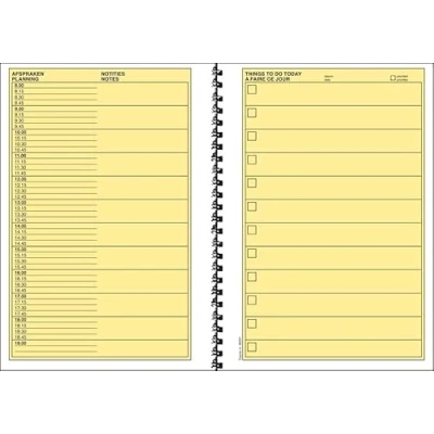 Bilingual daily agenda: in Dutch-Dutch and French DIN A5, 14.8 x 21 cm, 100 sheets Spiral bound printed front and back Made in Germany FSC certified: with environmentally friendly paper from responsible sources