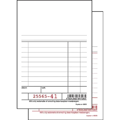 Receipt Pad White Numbered Pages with Blue Paper 10 x 16 cm, 2 x 50 sheets, 10 pieces. Dutch receipt pads.