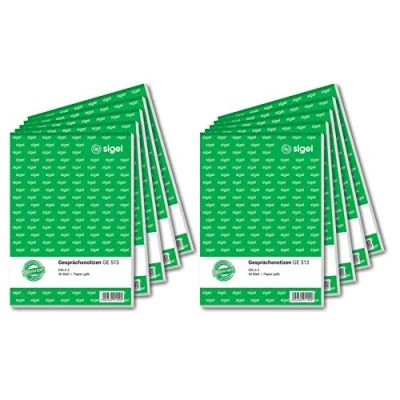 SIGEL GE513/10 Conversation Notes, Phone DIN A5, Yellow, 10 Pads of 50 Sheets, Made from Sustainable Paper