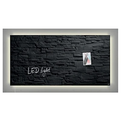 STYLISH: award-winning magnetic glass board GL457 (91 x 46 cm) in design slate with glossy, frameless surface, which gives it a 3D floating look - the stylish alternative to memo boards and whiteboards MULTIFUNCTIONAL: with warm white LED lighting - fixed to the back of the board with a white cable (2 m) incl. an European and UK plug. You can write on this board with markers (wet and dry wipe) and use neodymium magnets to pin (Note: due to 4 mm thick safety glass, only strong neodymium magnets will hold) - for the office or home office EASY MOUNTING: vertical or horizontal possible. Small drilling errors are compensated by the ingenious adjustment system. Important when putting several boards up next to each other - well explained here in the assembly video SAFETY: high-end tempered glass magnetic board (ESG safety glass, European certification EN 12150-1) 25 year warranty on the glass surface when using SIGEL accessories (more information available below) CONTENT: 3 strong superdym / neodymium magnets (No. GL192), mounting material, assembly instructions (also available below) and drilling template