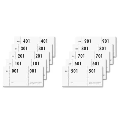 Practical double number blocks for events, parties, fairs: as wardrobe numbers, cake pads, tokens, food tokens or for raffles Assorted in 5 different colours: yellow, pink, white, light green, light blue Thanks to the excellent cut bridge perforations, each sheet and every tear can be separated quickly and cleanly Environmentally friendly: FSC certified, high-quality paper from responsible sources, made in Germany Please note: you will receive 10 blocks with 100 numbers each - in sequential numbering from 1-1000, a colour selection is unfortunately not possible (you will receive a pack of 10 in one colour only)