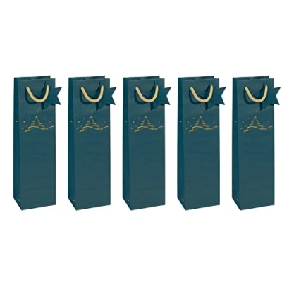 The high-quality SIGEL gift bags with a stylish, contemporary festive design add an extra-special touch to your Christmas presents. Special packaging for carefully chosen gifts: Gift bag bottle "Christmas tree" made of paper in the 10 x 35 cm format in petrol Blue. With colour-coordinated cord handles and a gift tag for a personal message | CardBoard base for more stability The fast, decorative way to wrap Christmas presents | Perfect for all kinds of bottles, such as sparkling wine, prosecco, wine and champagne Discover all the other designer products in the Christmas Tree (Collection comprises writing paper, envelopes, cards, gift bags, gift wrap and stickers.) collection.