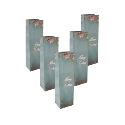 SIGEL GT125 Gift Bag Bottle Blue/Copper Christmas Stars with Base Insert and Colour Coordinated Silk Ribbon Handles Plastic, White Cardboard 10 x 35 8 cm Pack of 5