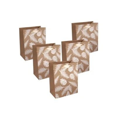 The high-quality SIGEL gift bags with a stylish, contemporary festive design add an extra-special touch to your Christmas presents Special packaging for carefully chosen gifts: Gift bag small "Pine Cones and Pine Branches" made of paper (matt with UV varnish print) in the 18 x 23 x 10 cm format in brown/white With colour-coordinated satin ribbons as carrying handle Cardboard base for more stability The fast, decorative way to wrap Christmas presents; Printed on brown kraft paper for a natural look