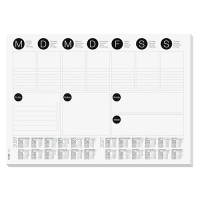 SIGEL's tear-off paper desk pad is decorative, practical, and protects your desk from ink and hot cups, both in your on-site office and home office Quality made in Germany - the paper desk pad "Weekly Planner" with calendar 2026/2027 (DE/EN/FR/NL) in the A3 format (42 x 29,70 x 0,50 cm) provides protection, plenty of space for writing on its 30 sheets, and is extremely durable Premium quality tear-off pad, made of high-quality paper (80 gsm, FSC-certified) Practical A3 format: protects even small desks from scratches and stains Durable, slip-proof and lies completely flat thanks to the sturdy cardboard backing; No dog-eared corners thanks to the special gluing along the top and bottom edges; tear-off notepad function